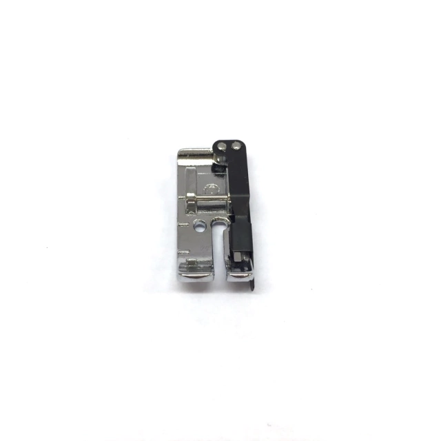 La guía en el pie permite observar y coser perfectamente a ¼ de pulgada. Se coloca la guía negra en la orilla de la tela y la costura recta quedará a esa distancia del borde. Sólo se usa con costura recta.